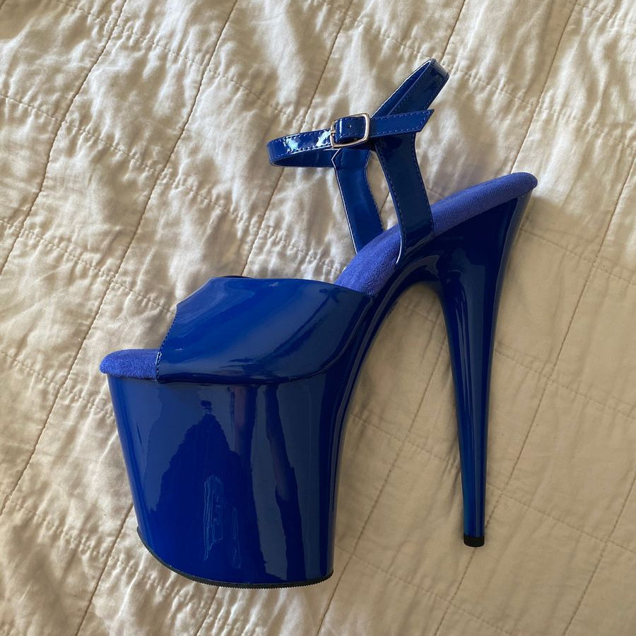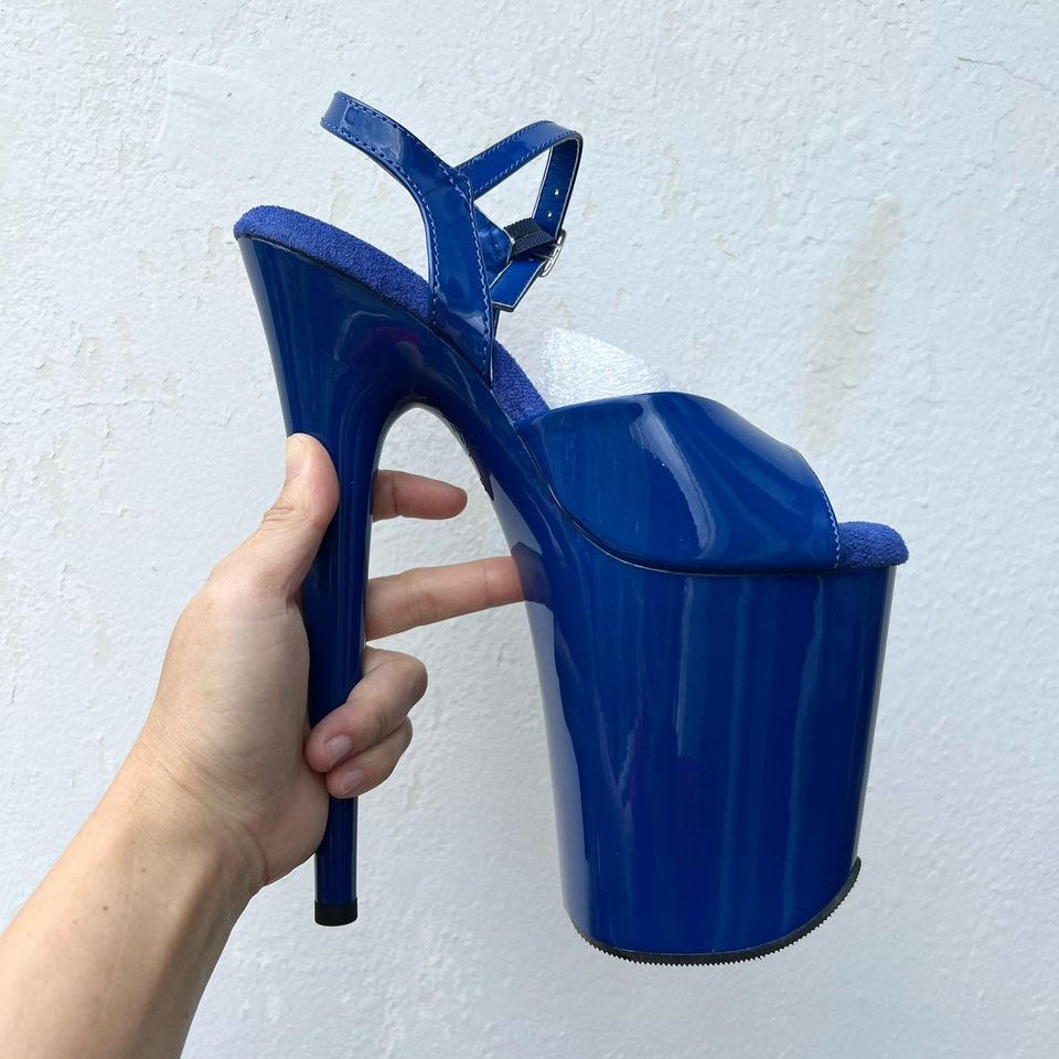 Royal Blue Patent Ankle Strap Sandals with Royal Blue Insoles and Platform Bottom