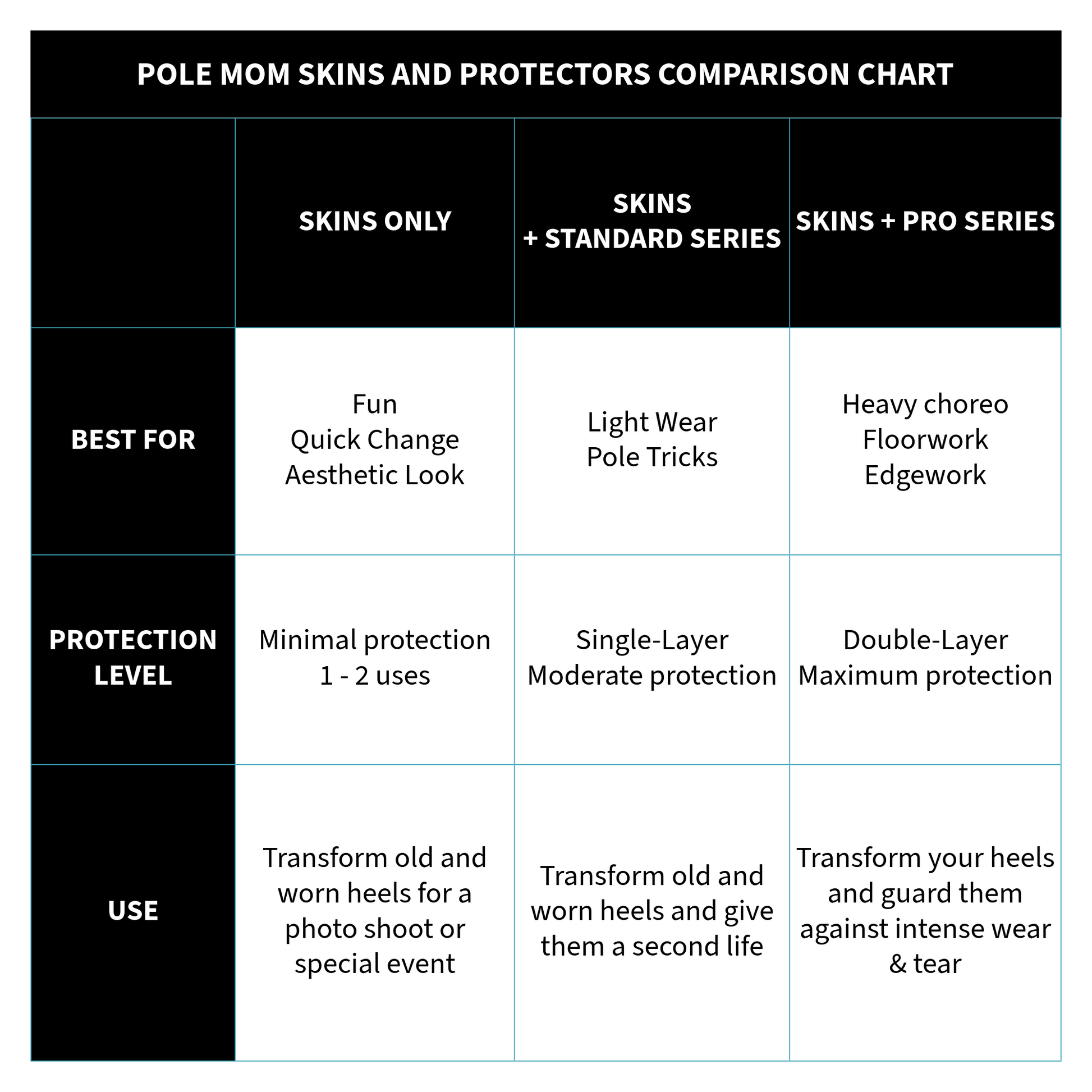 - Think of SKINS as nail polish for your heels; it's all about the looks. The protectors are the top coat, which keeps them flawless.