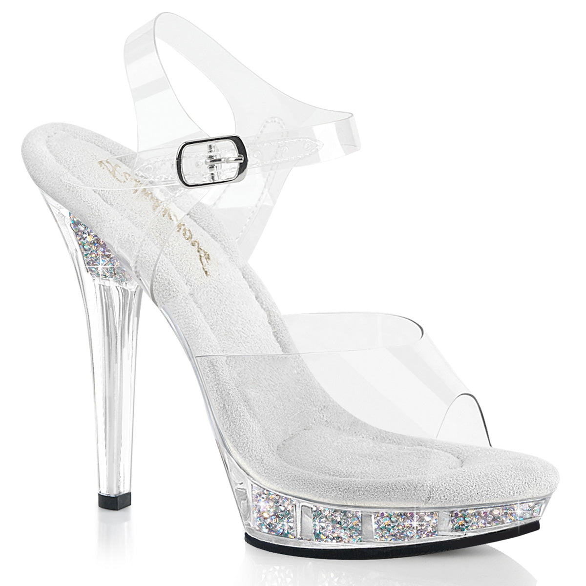 Clear Ankle Strap Sandals with AB Multi-Coloured Rhinestones Inserted in the Clear Platform Bottom & Heel