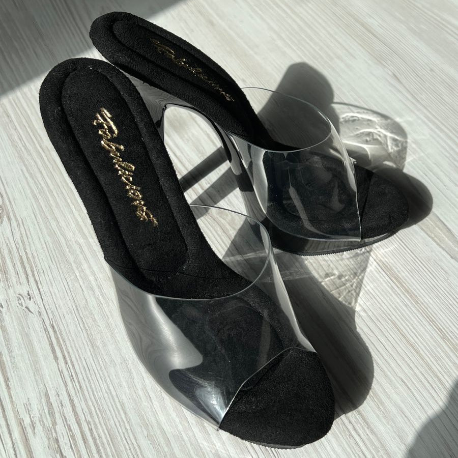 Clear Peep Toe Slides/Mules with Black Insoles, Platform Bottom and Heel