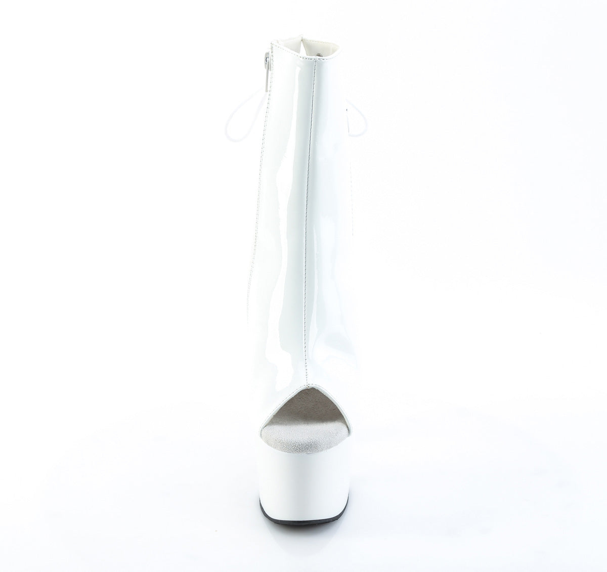 White Patent Peep Toe/Open Heel Lace-Up Back Ankle Boots with a Hidden Zip Pocket and Inner Side Zipper
